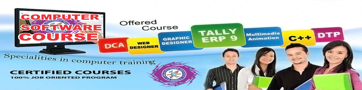 Computer Fundamental & Information Technology, Corel Draw (Graphics Base Designing), DOS & Windows (Operating System), Photoshop (Image, Editing & Effects), MS Word (MS Office) , Fox-Pro (DBMS Programming Language), MS Excel (MS Office), C++ (Programming Language), MS Power Point & MS Excess (MS Office), Oracle (D. Base & Programming), Accounting (Mannual & Computerized), HTML & DHTML (Web Designing), Tally ERP with GST, Internet & E-Commerce, Page Maker (Desktop Designing)